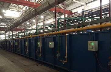 采用12套燃?xì)鉄彀惭b在爐體二側(cè),在爐內(nèi)輻射傳熱。燃燒完全,調(diào)節(jié)比大,便于調(diào)節(jié)和控制,并具有自動(dòng)點(diǎn)火,自動(dòng)調(diào)節(jié)火焰監(jiān)測(cè)和熄火保護(hù)全套功能。